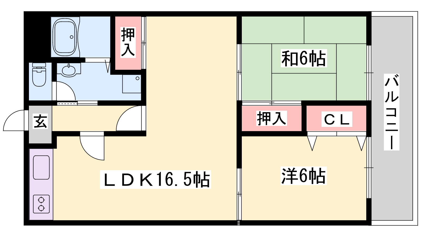 - LDK16.5帖、洋室6帖、和室6帖