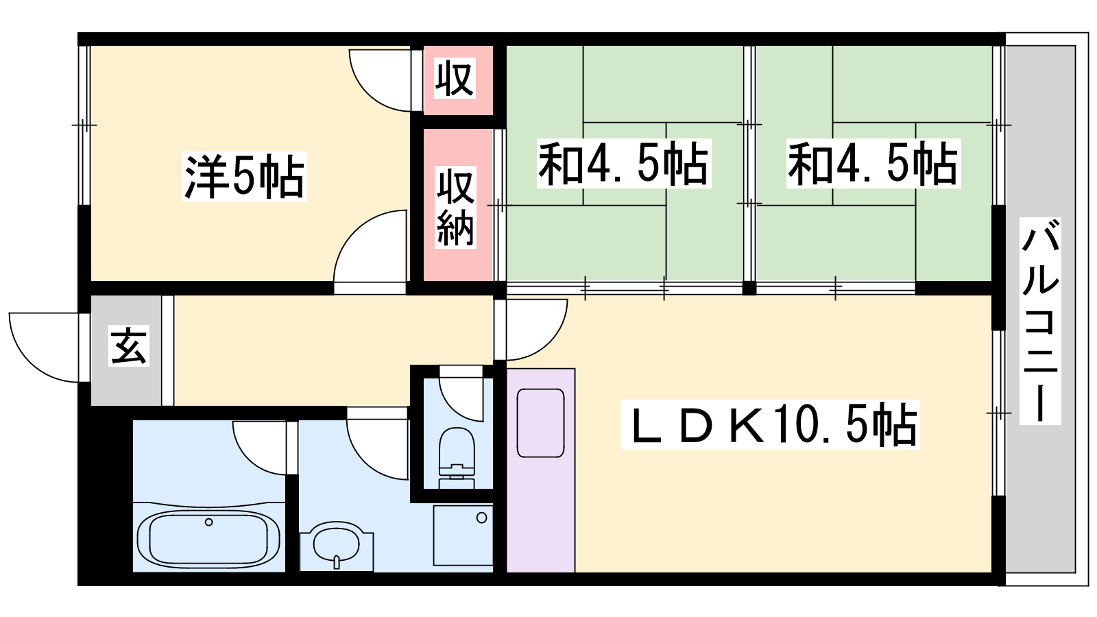 - LDK10.5帖、洋室6帖、和室4.5帖、和室4.5帖