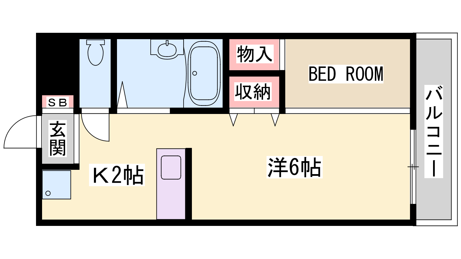 - K2帖、洋室6帖
