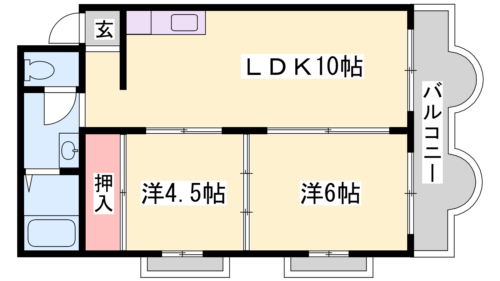 - LDK10帖、洋室6帖、洋室4.5帖