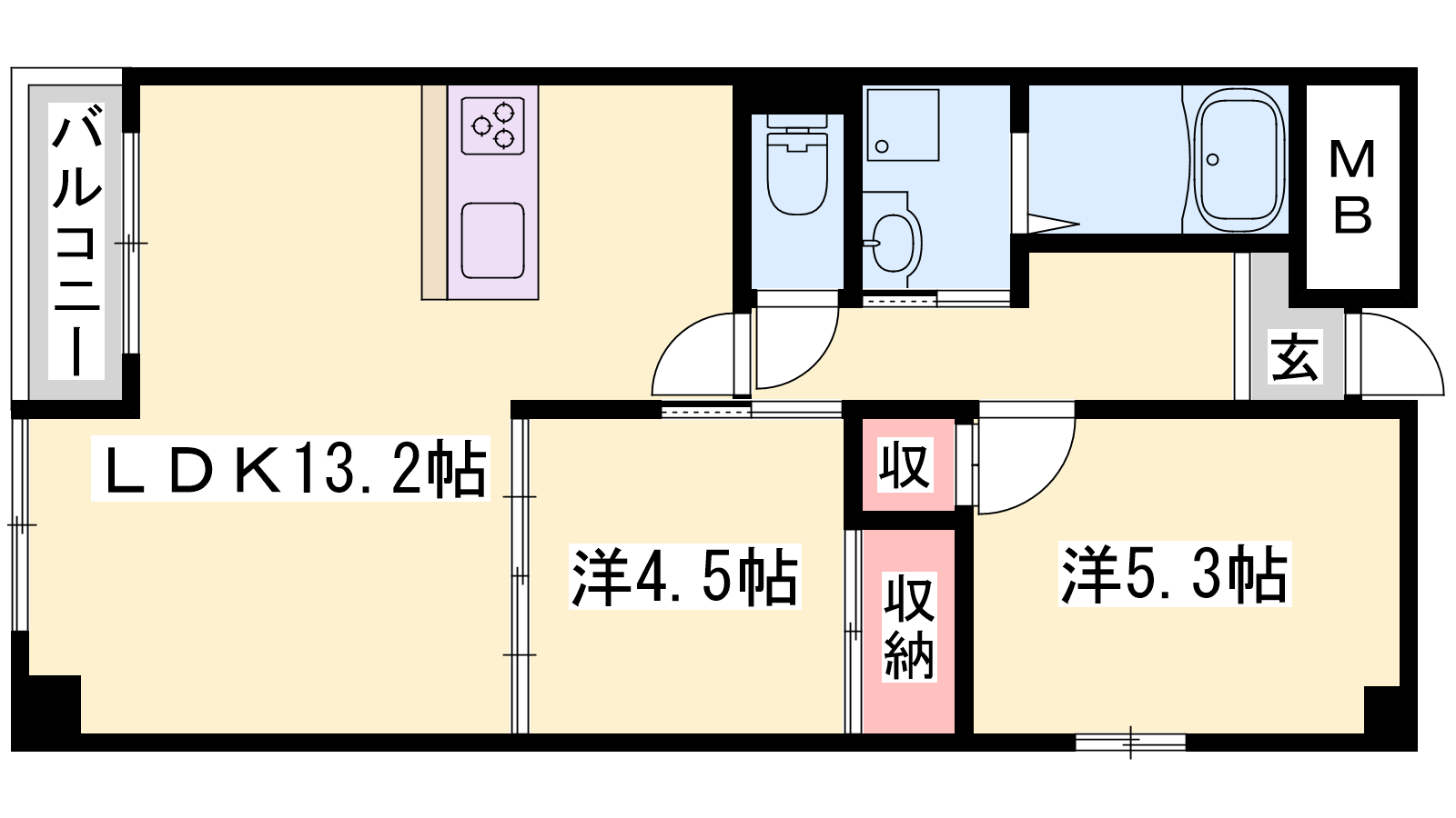 - DK13.2帖、洋室5.3帖、洋室4.5帖