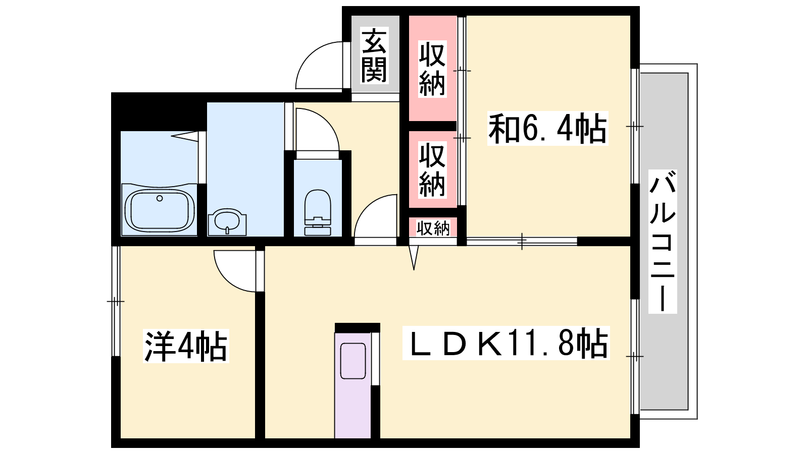 - LDK11.8帖、洋室4帖、和室6.4帖