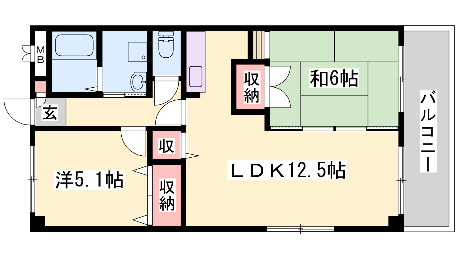 - LDK12.5帖、和室6帖、洋室5.1帖