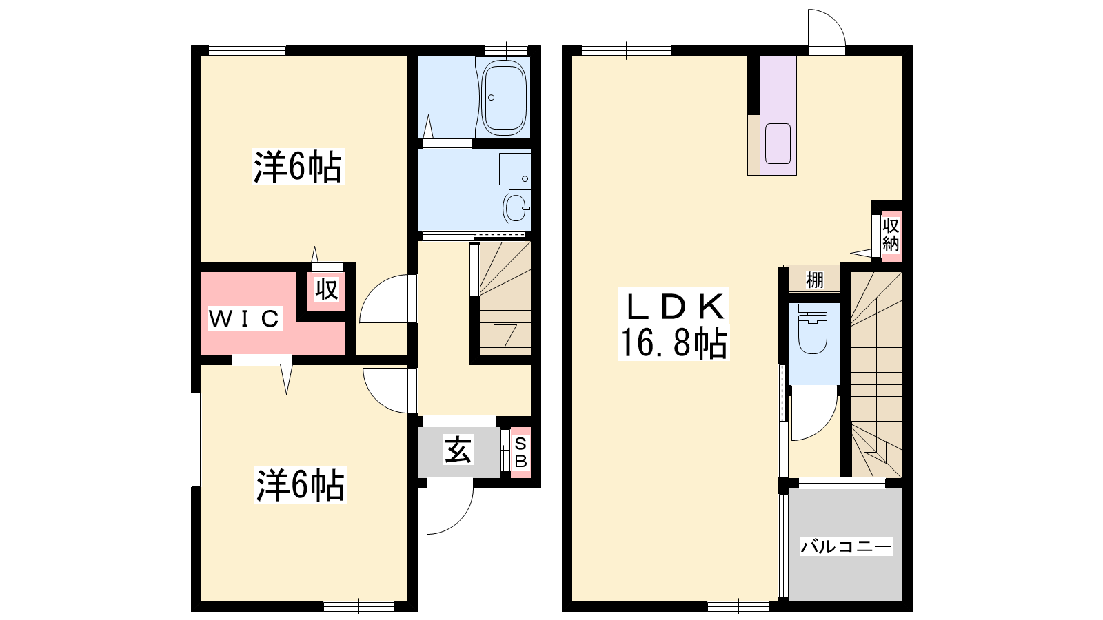 - LDK16.8帖、洋室6帖、洋室6帖