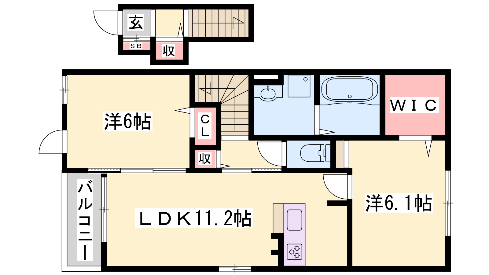 - LDK11.2帖、洋室6.1帖、洋室6帖