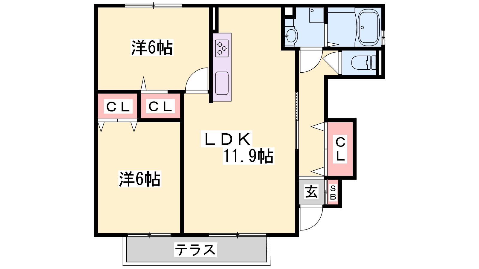 - LDK11.9帖、洋室6帖、洋室6帖