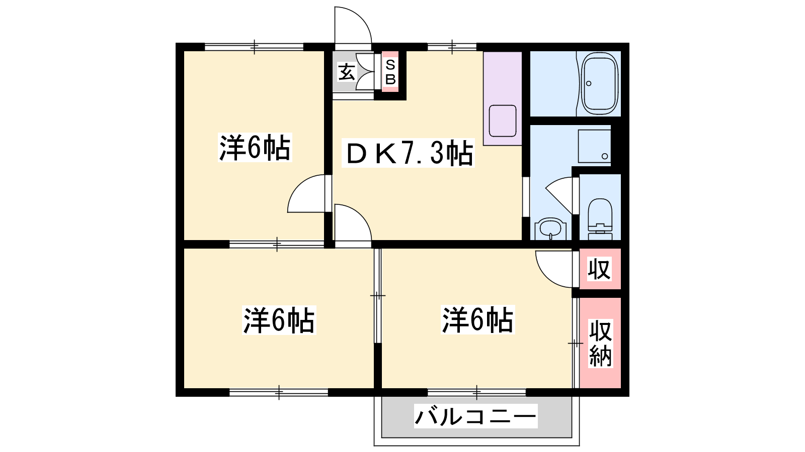- DK7.3帖、洋室6帖、洋室6帖、洋室6帖