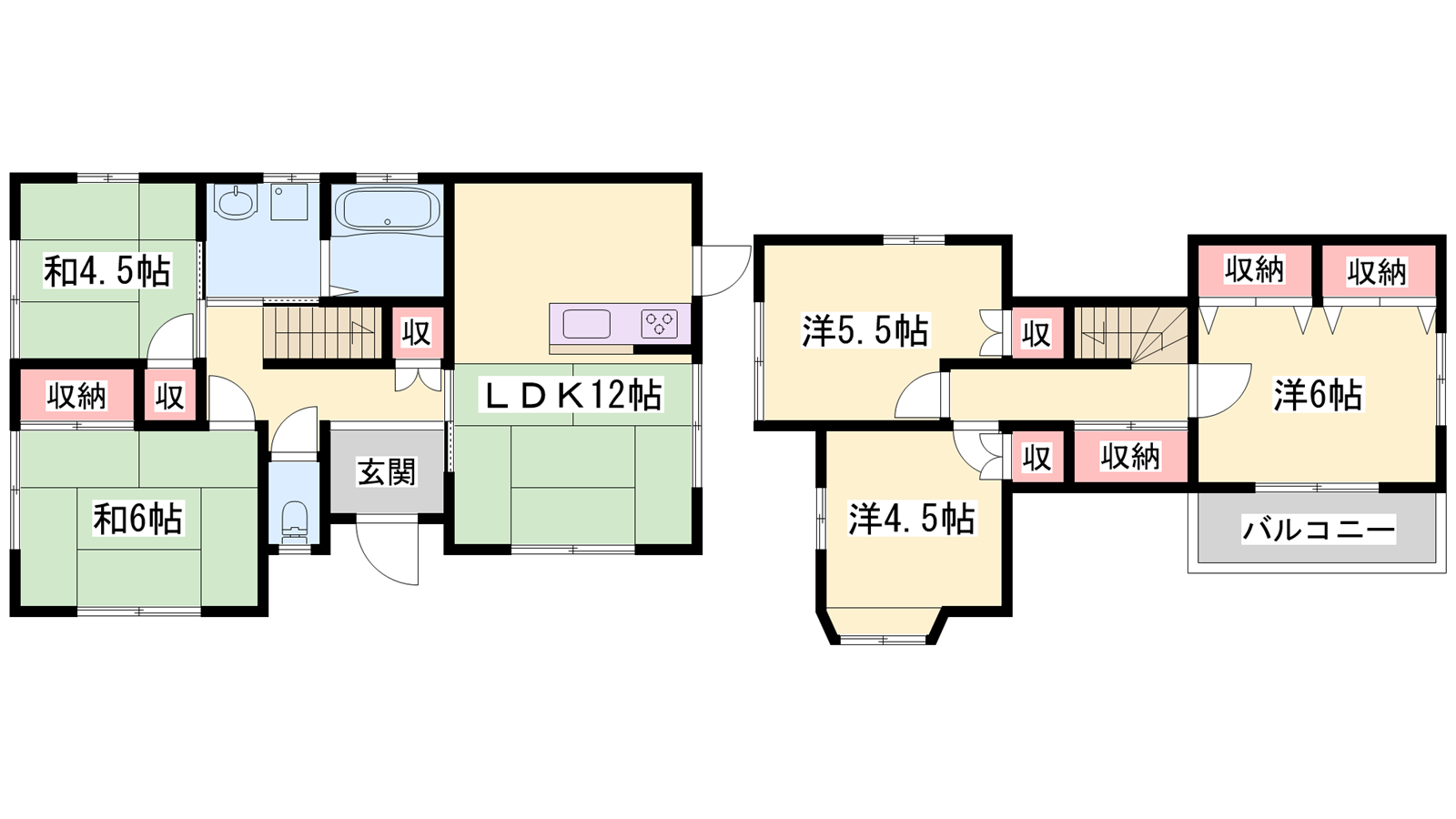 - LDK12帖、洋室6帖、和室6帖、洋室5.5帖、洋室4.5帖、和室4.5帖