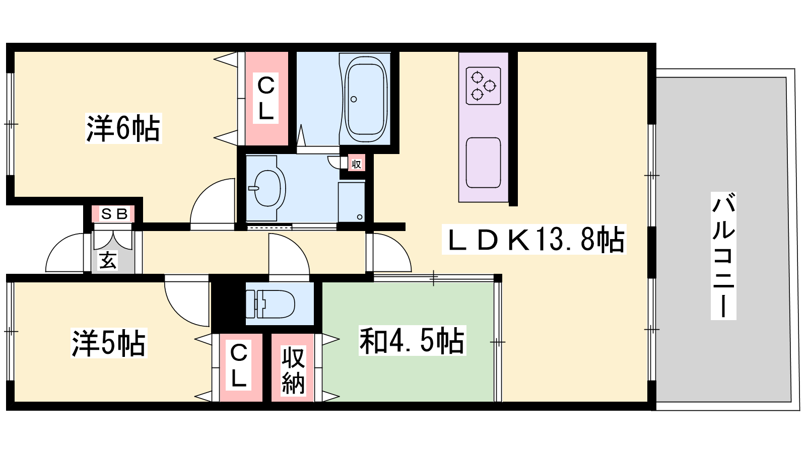 - LDK13.8帖、洋室6帖、洋室5帖、和室4.5帖