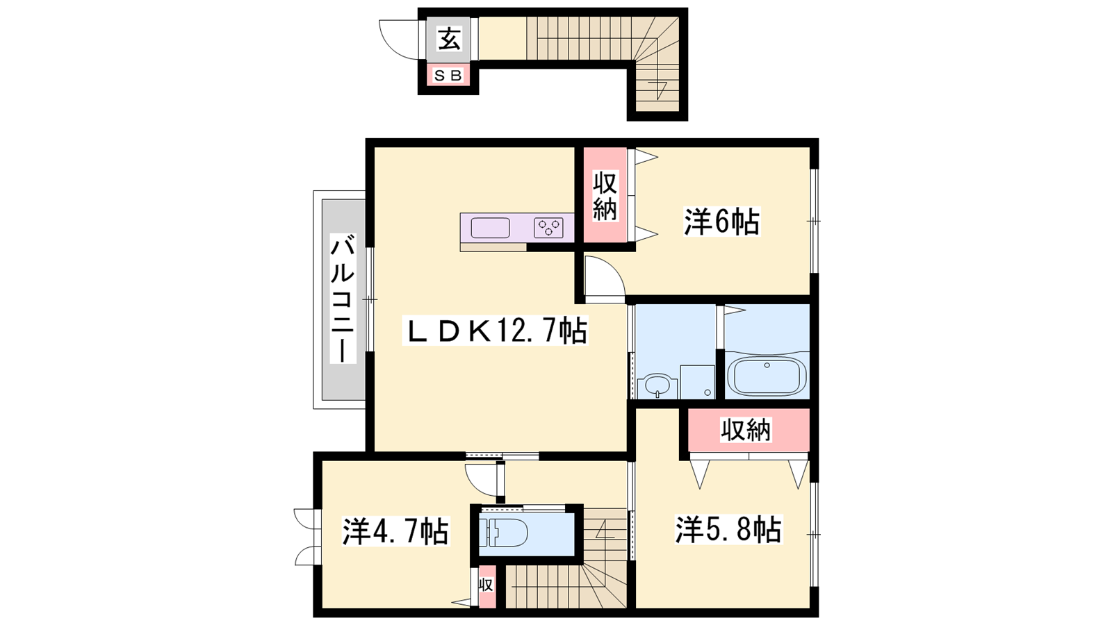 - LDK13.1帖、洋室6.4帖、洋室6.4帖、洋室4.5帖