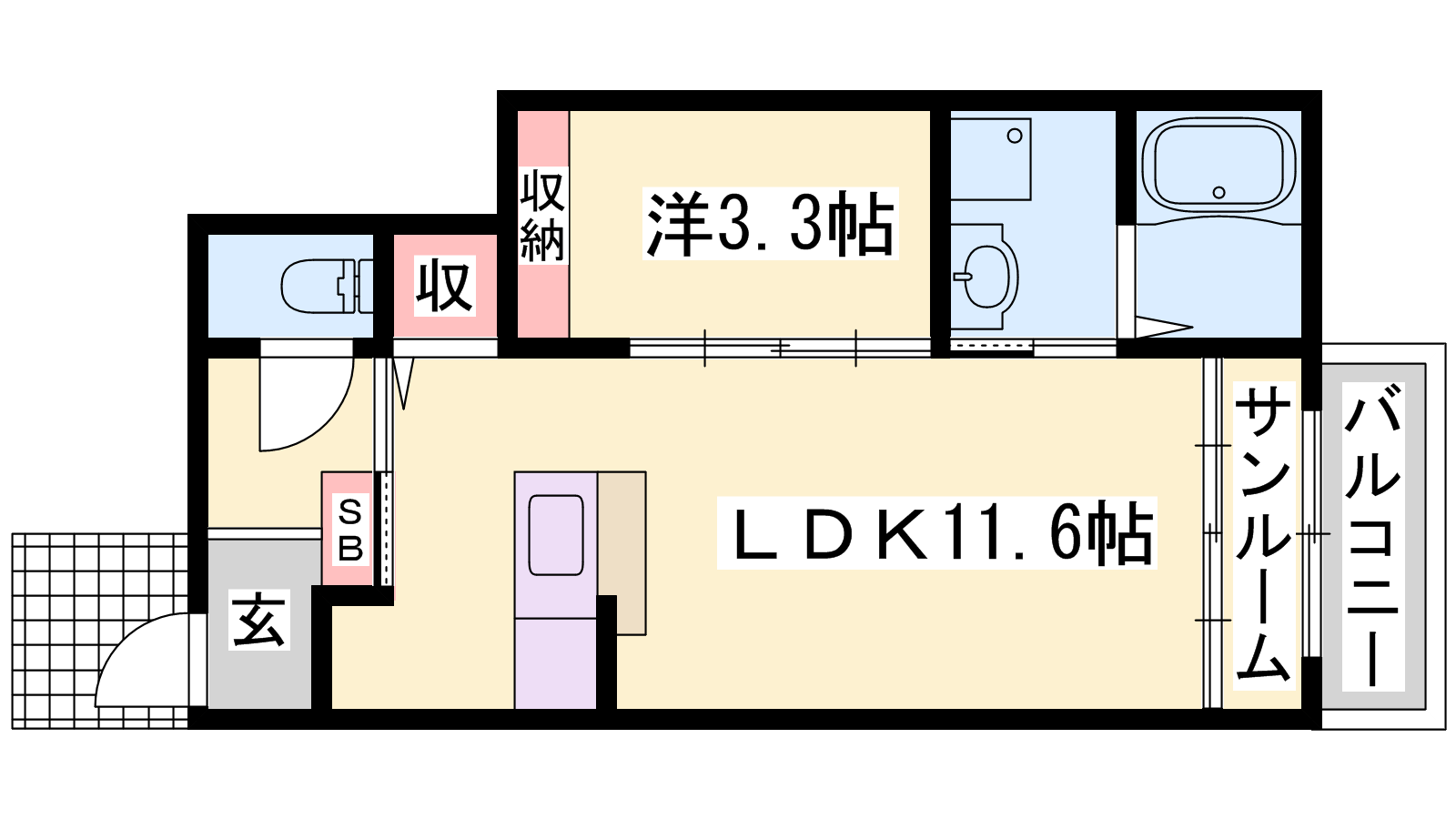 - LDK11.6帖、洋室3.3帖