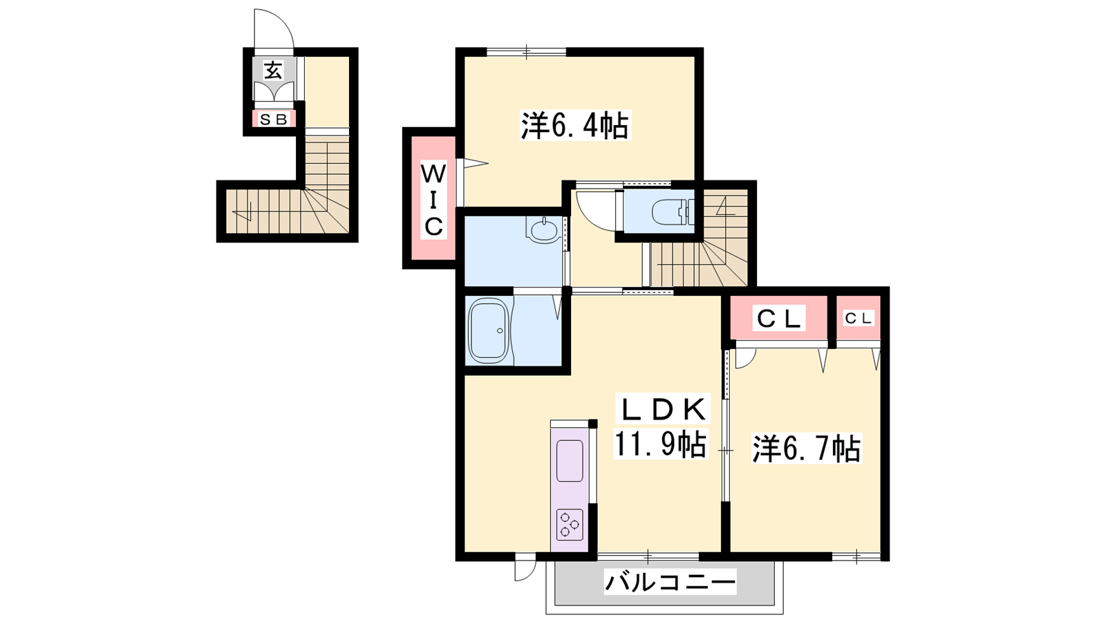 - LDK11.9帖、洋室6.7帖、洋室6.4帖