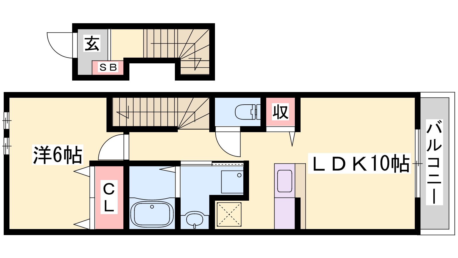 - LDK10帖、洋室6帖
