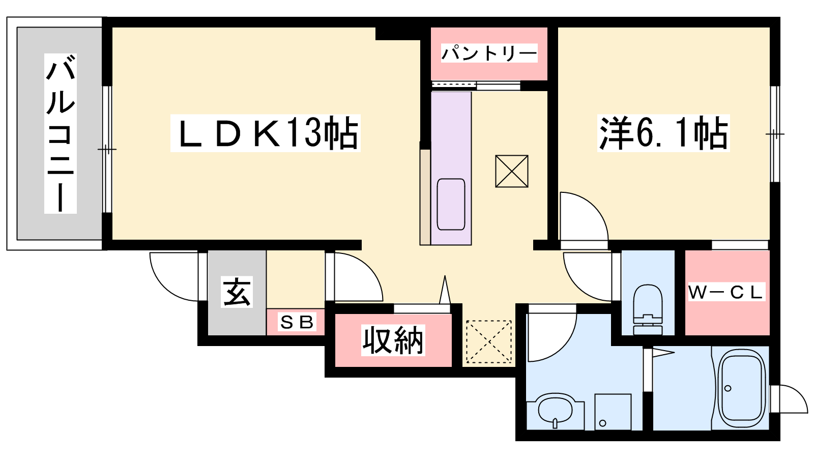 - LDK13帖、洋室6.1帖