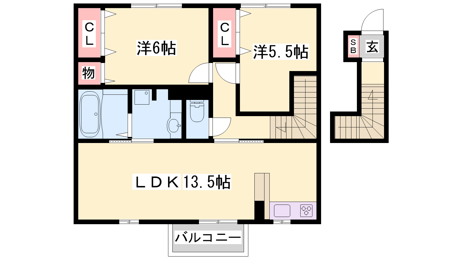 - LDK13.5帖、洋室6帖、洋室5.5帖