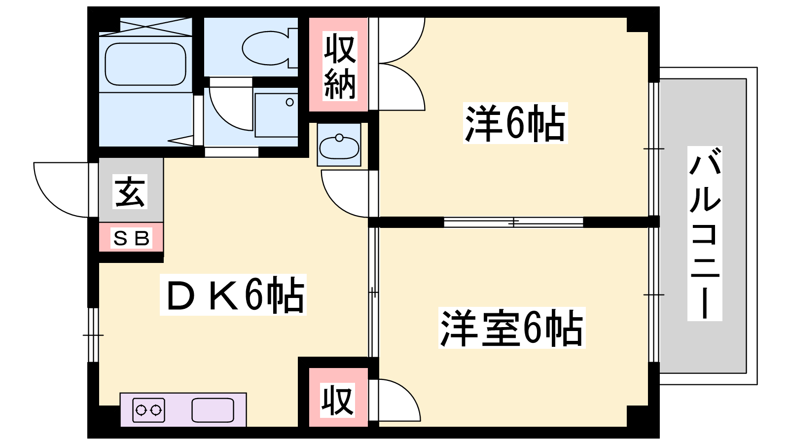 - DK6帖、洋室6帖、和室6帖