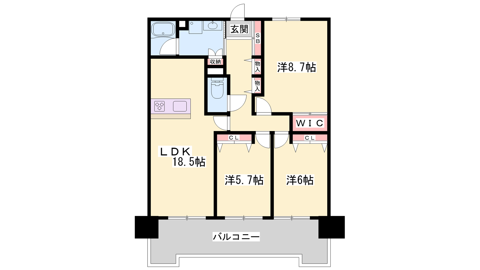 - LDK18.5帖、洋室8.7帖、洋室6帖、洋室5.7帖