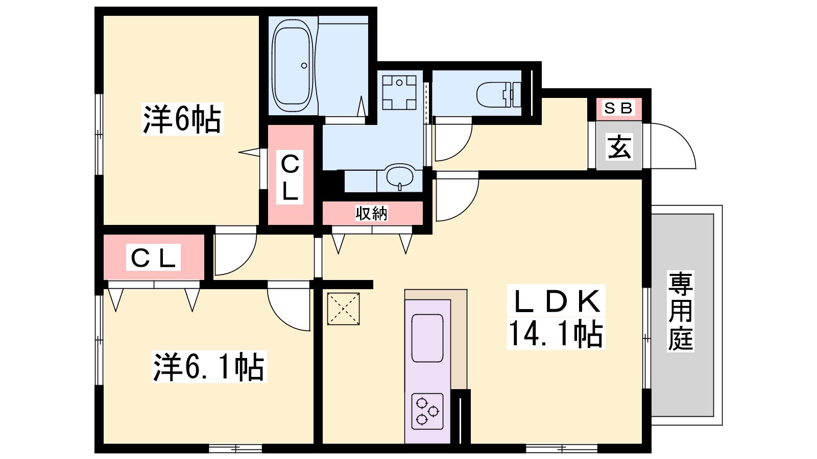- LDK14.1帖、洋室6.1帖、洋室6帖