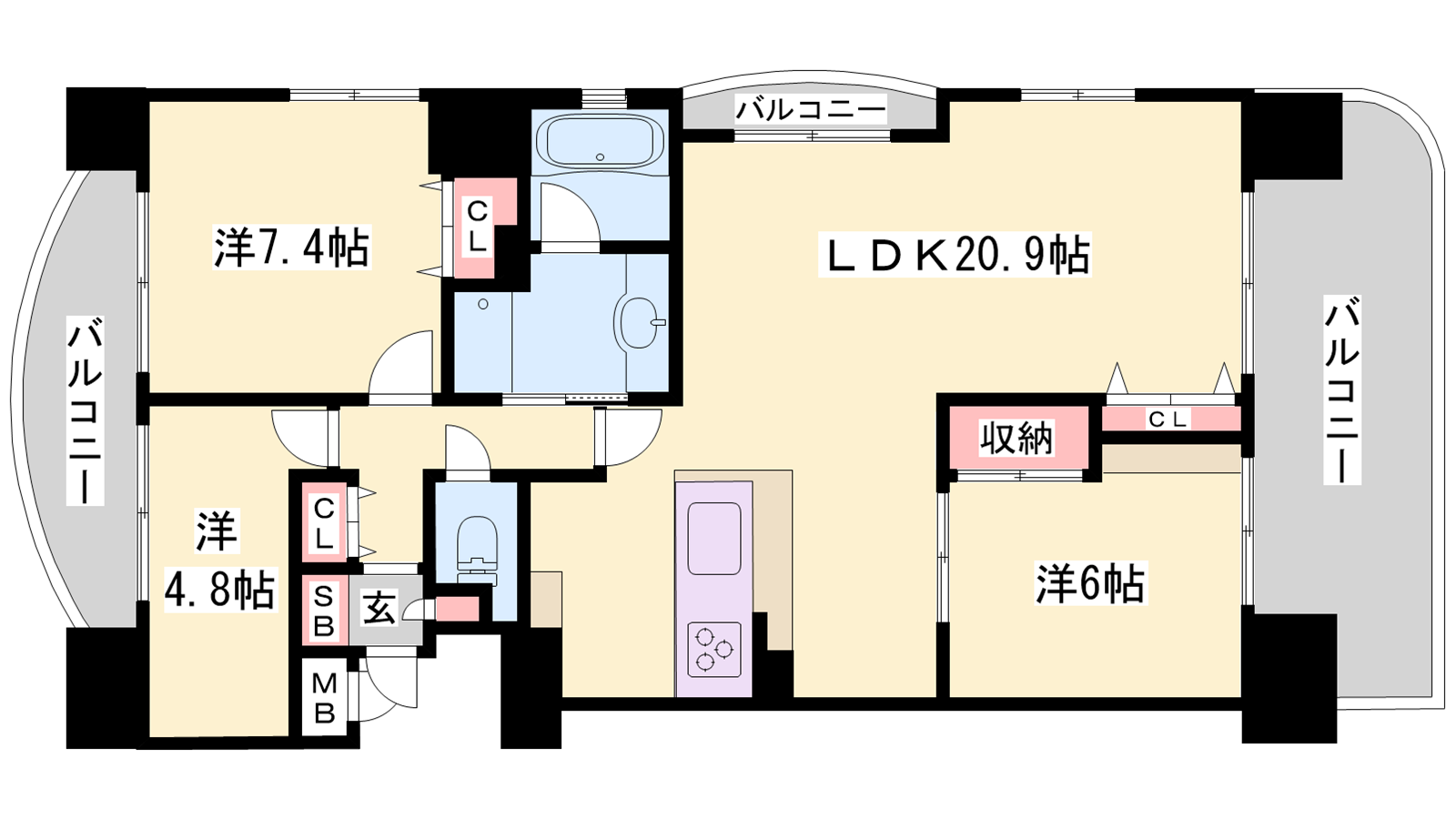 - LDK20.9帖、洋室7.4帖、洋室6帖、洋室4.8帖