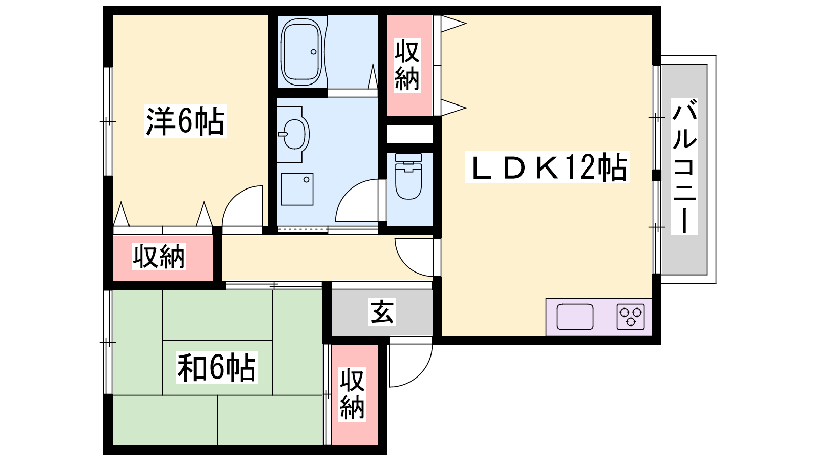 - LDK12帖、洋室6帖、和室6帖