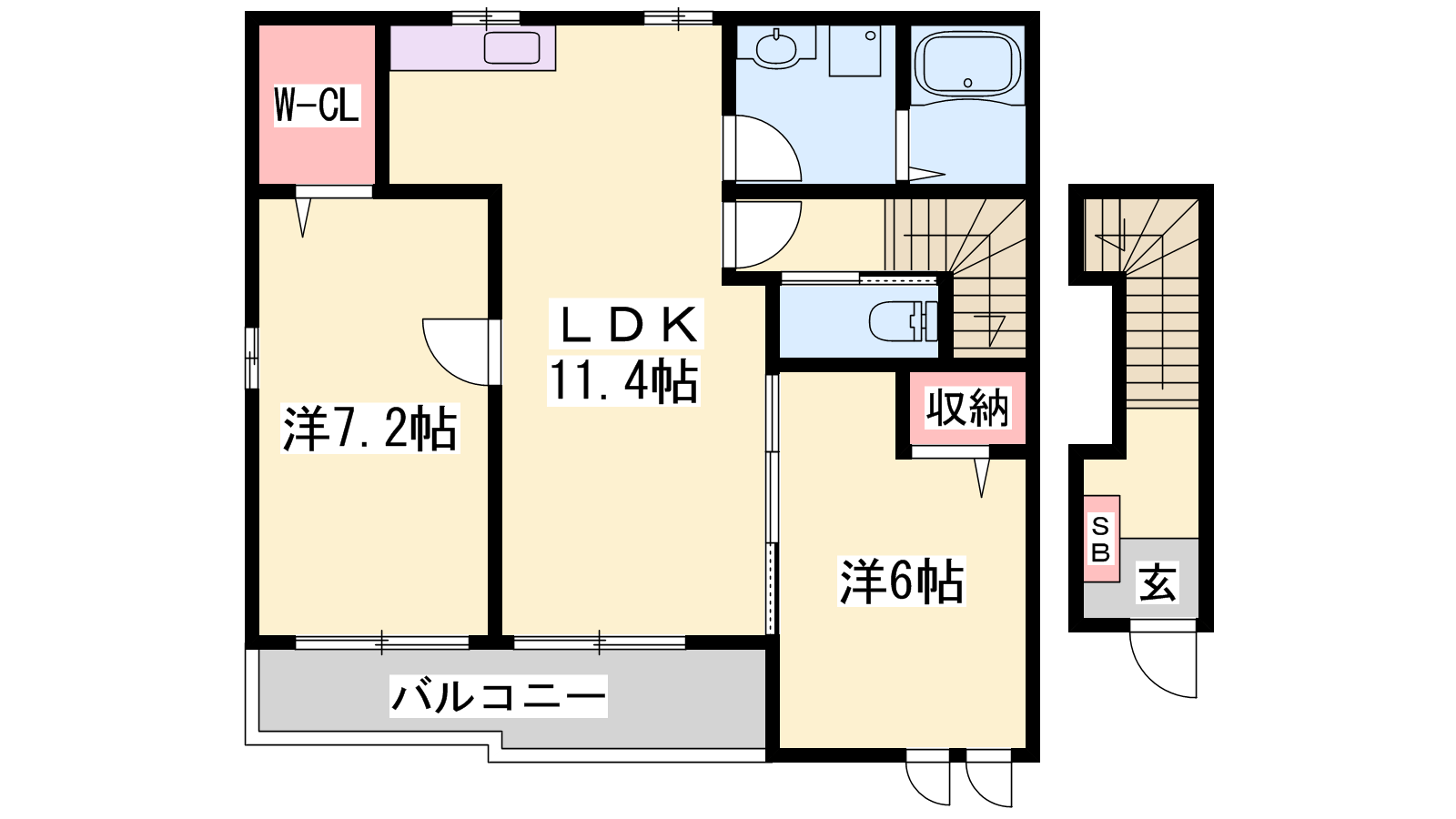 - LDK11.4帖、洋室7.2帖、洋室6帖