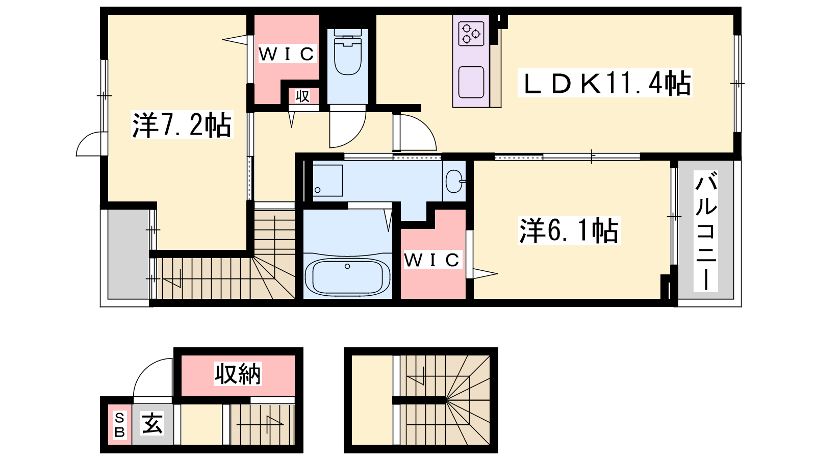 - LDK11.4帖、洋室6.1帖、洋室7.1帖