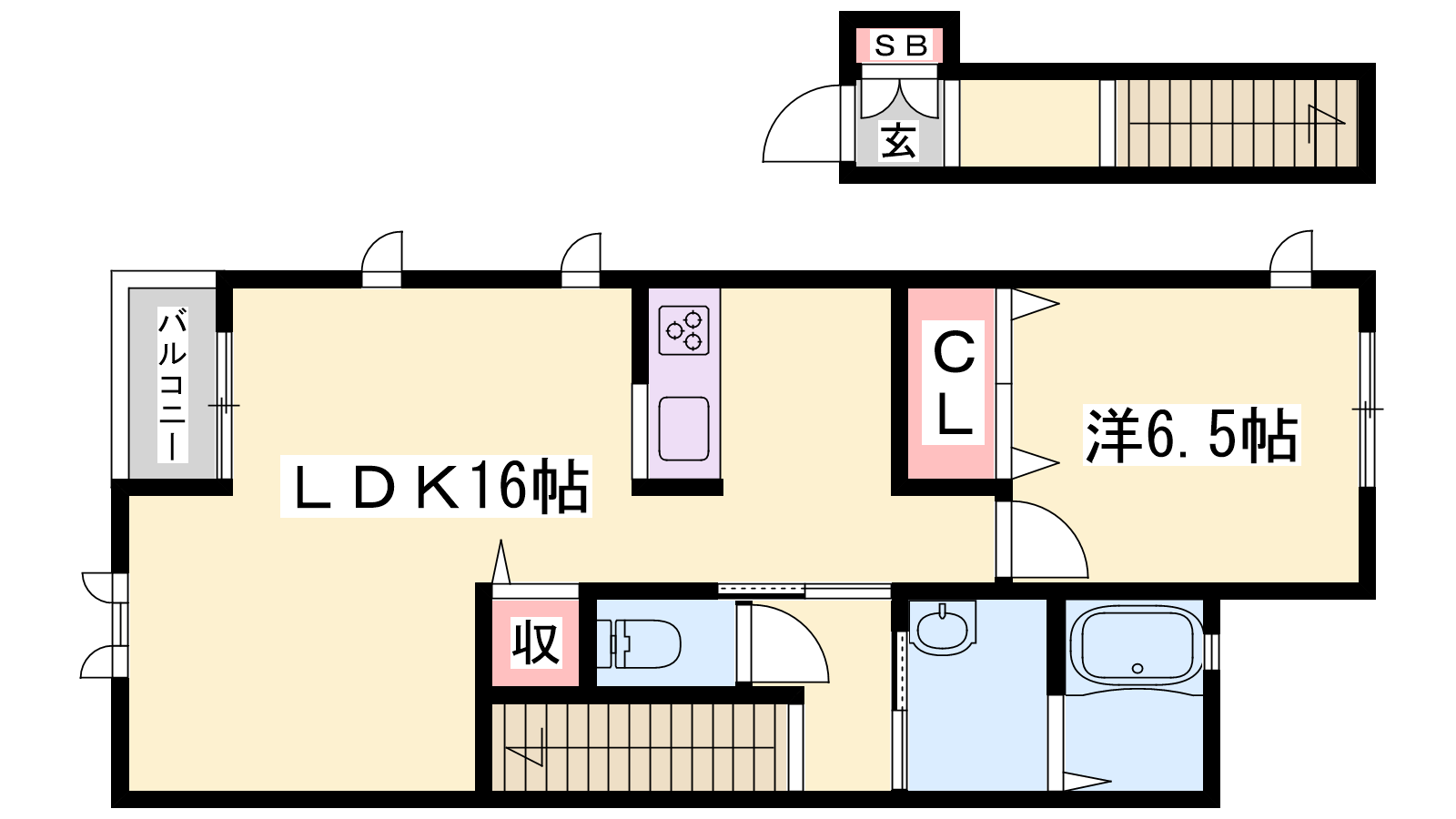 - LDK16帖、洋室6.5帖