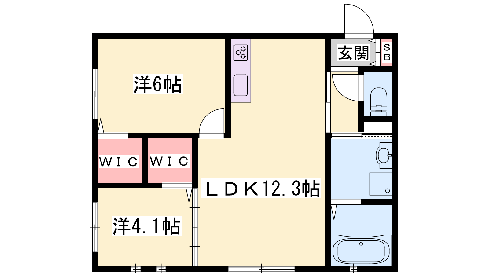 - LDK12.3帖、洋室6帖、洋室4.1帖