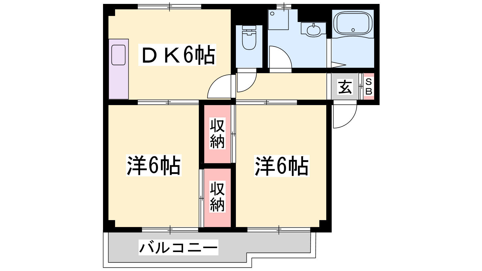 - DK6帖、洋室6帖、洋室6帖