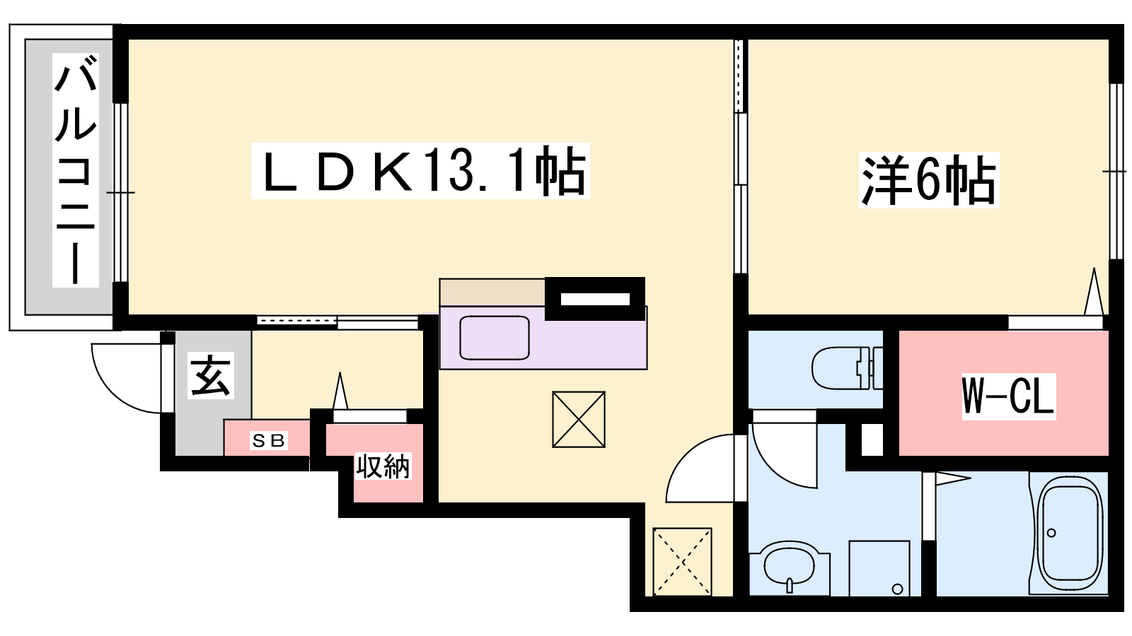 - LDK13.1帖、洋室6帖