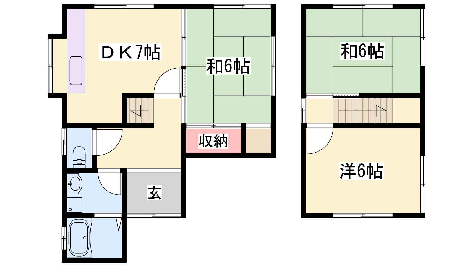 - DK7帖、洋室6帖、和室6帖、和室6帖
