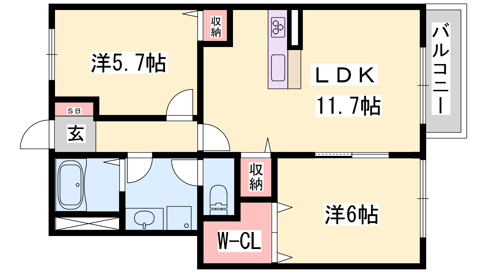 - LDK11.7帖、洋室5.7帖、洋室6帖