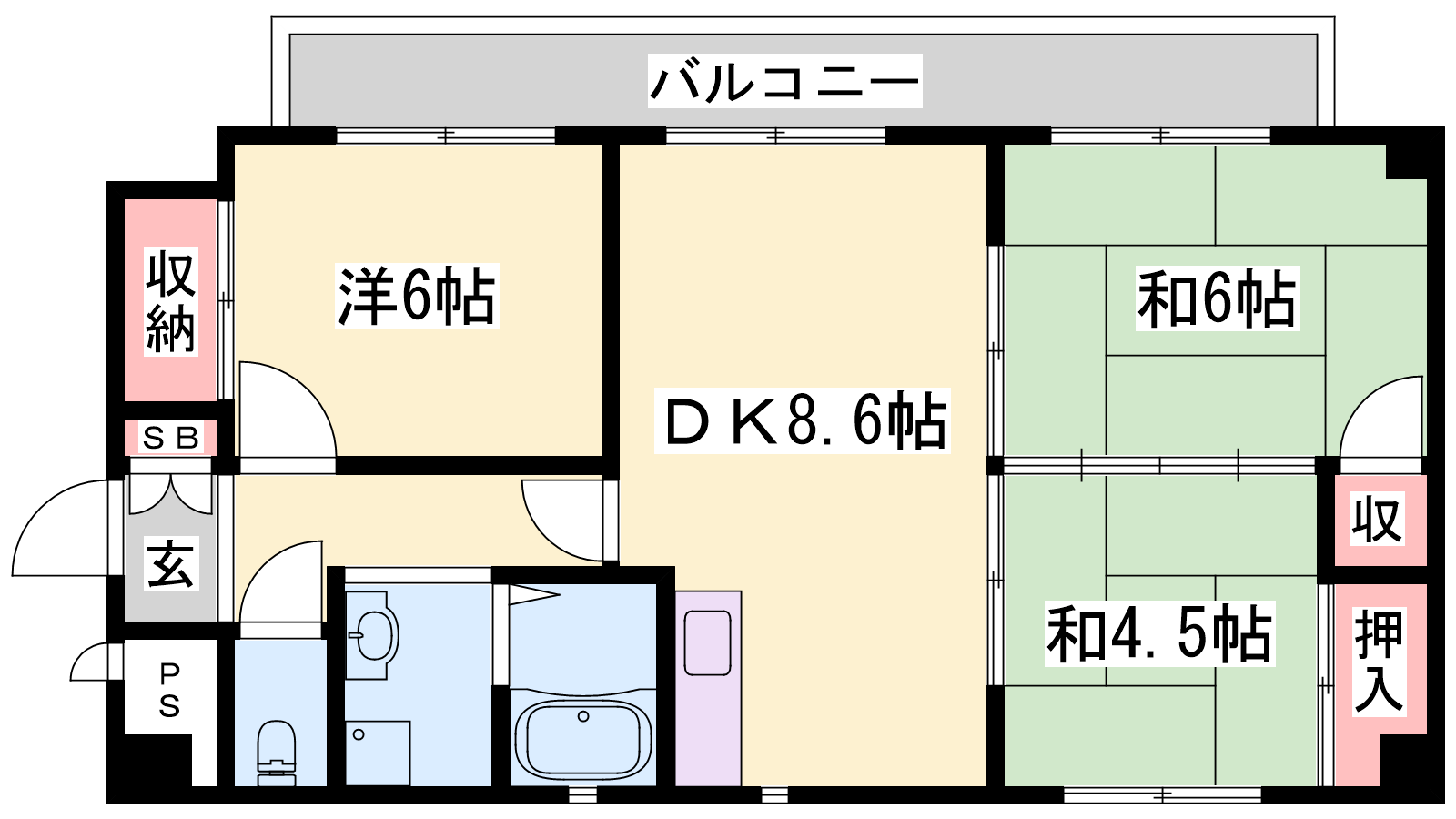 - LDK8.6帖、洋室6帖、和室6帖、和室4.5帖