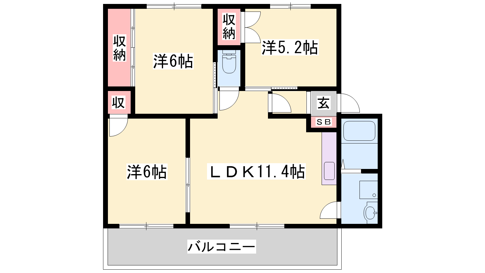- DK11.4帖、洋室6帖、洋室6帖、洋室5.2帖