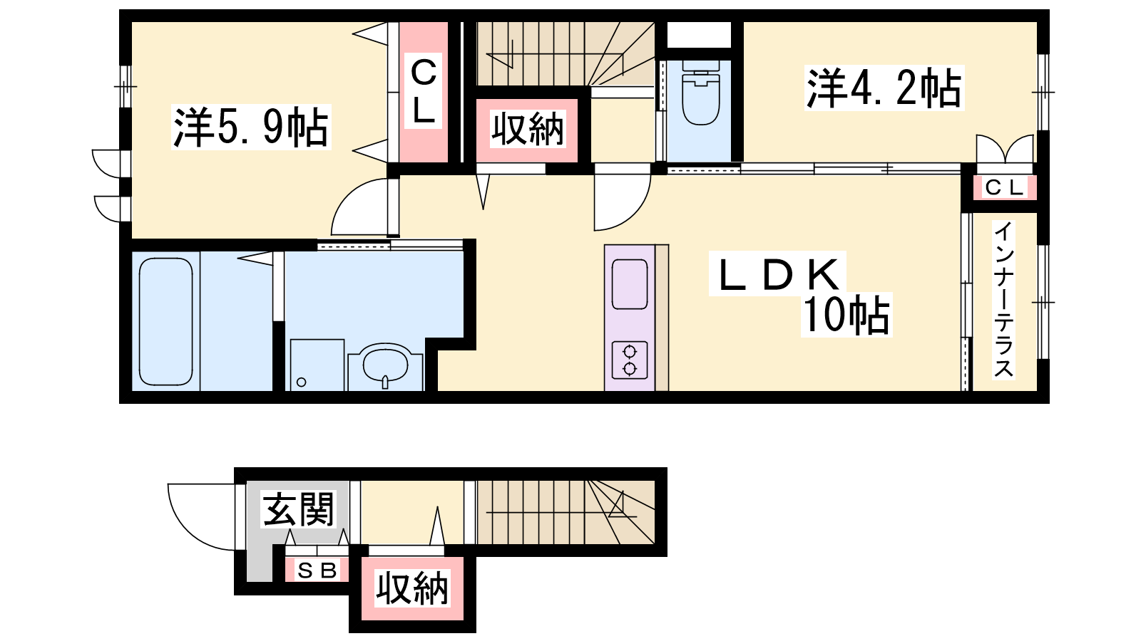 - LDK10帖、洋室5.9帖、洋室4.2帖