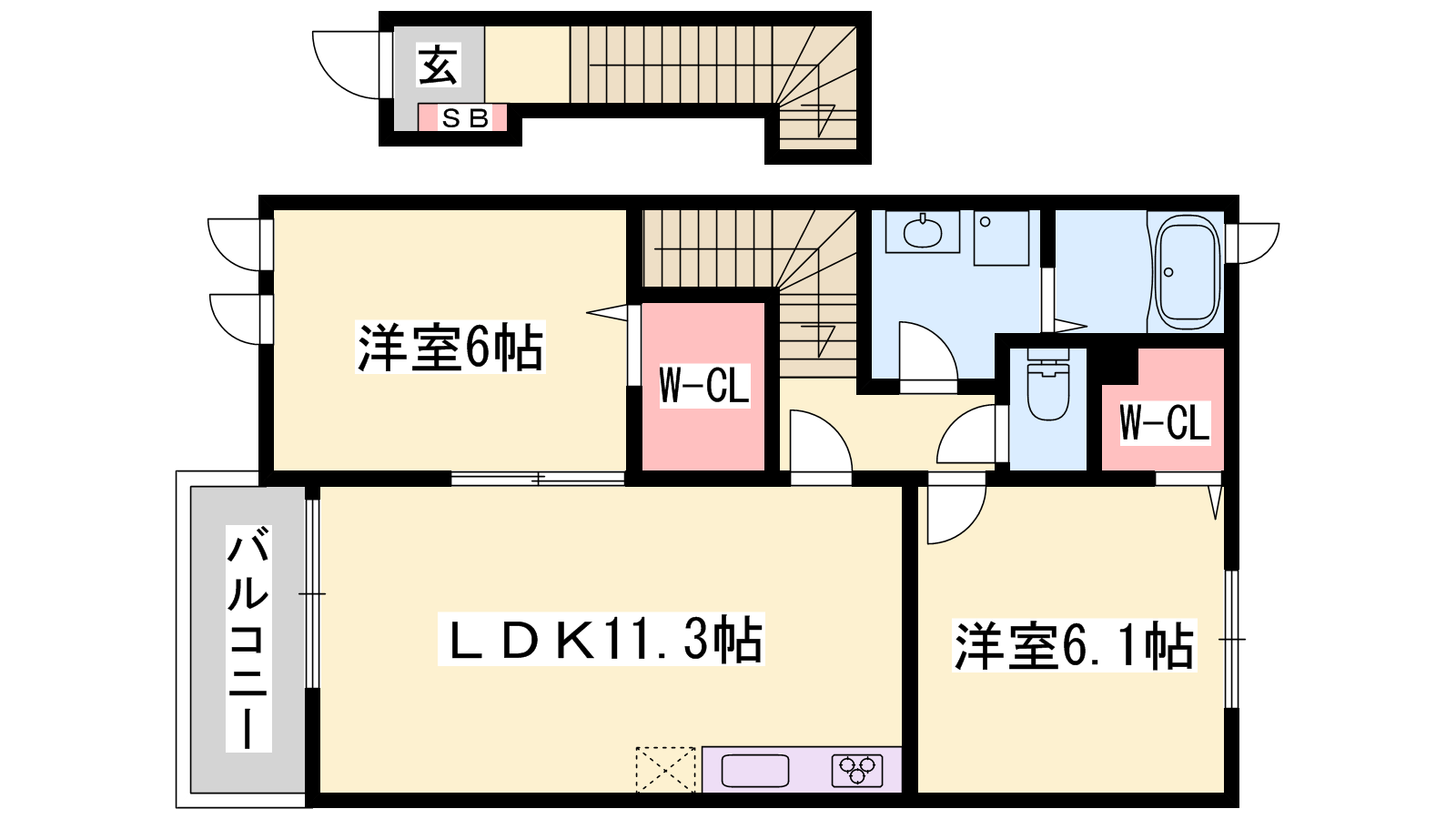 - LDK11.3帖、洋室6.1帖、洋室6帖