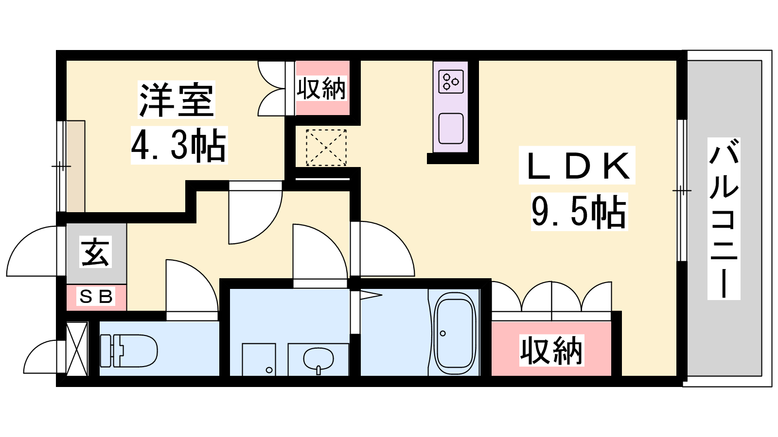 - LDK9.5帖、洋室4.3帖