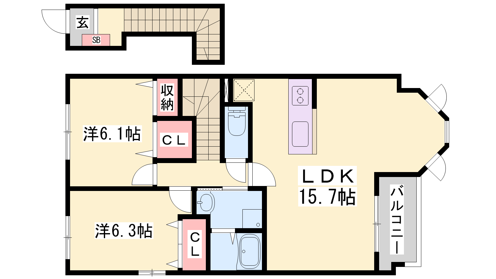 - LDK15.7帖、洋室6.3帖、洋室6.1帖