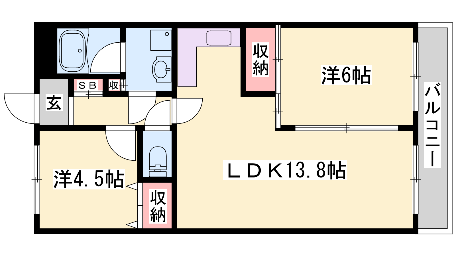 - DK13.8帖、洋室6帖、洋室4.5帖