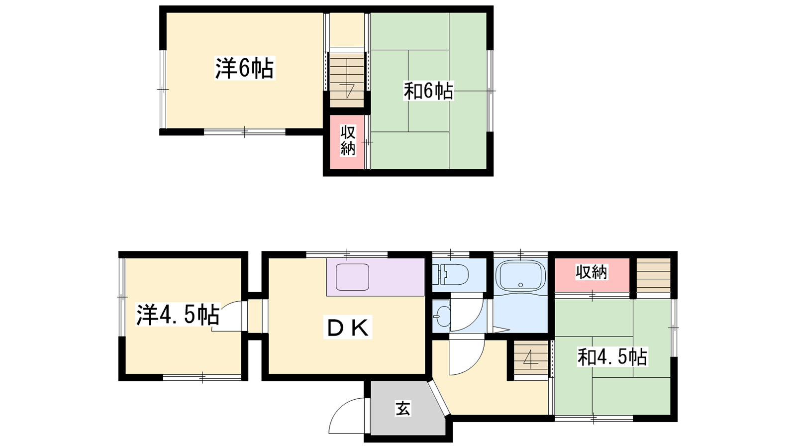 - 洋室6帖、洋室4.5帖、和室6帖、和室4.5帖