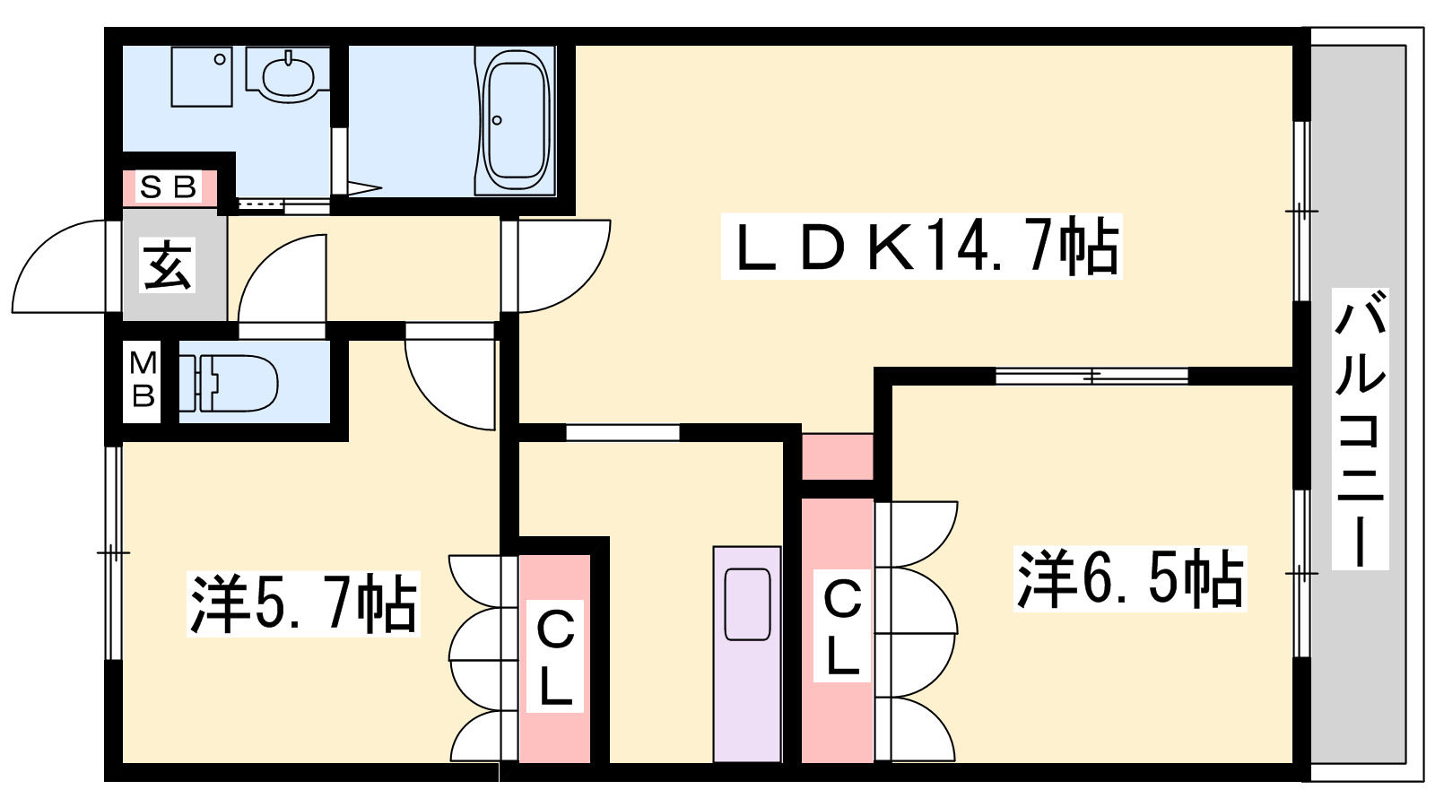 - LDK14.7帖、洋室6.5帖、洋室5.7帖