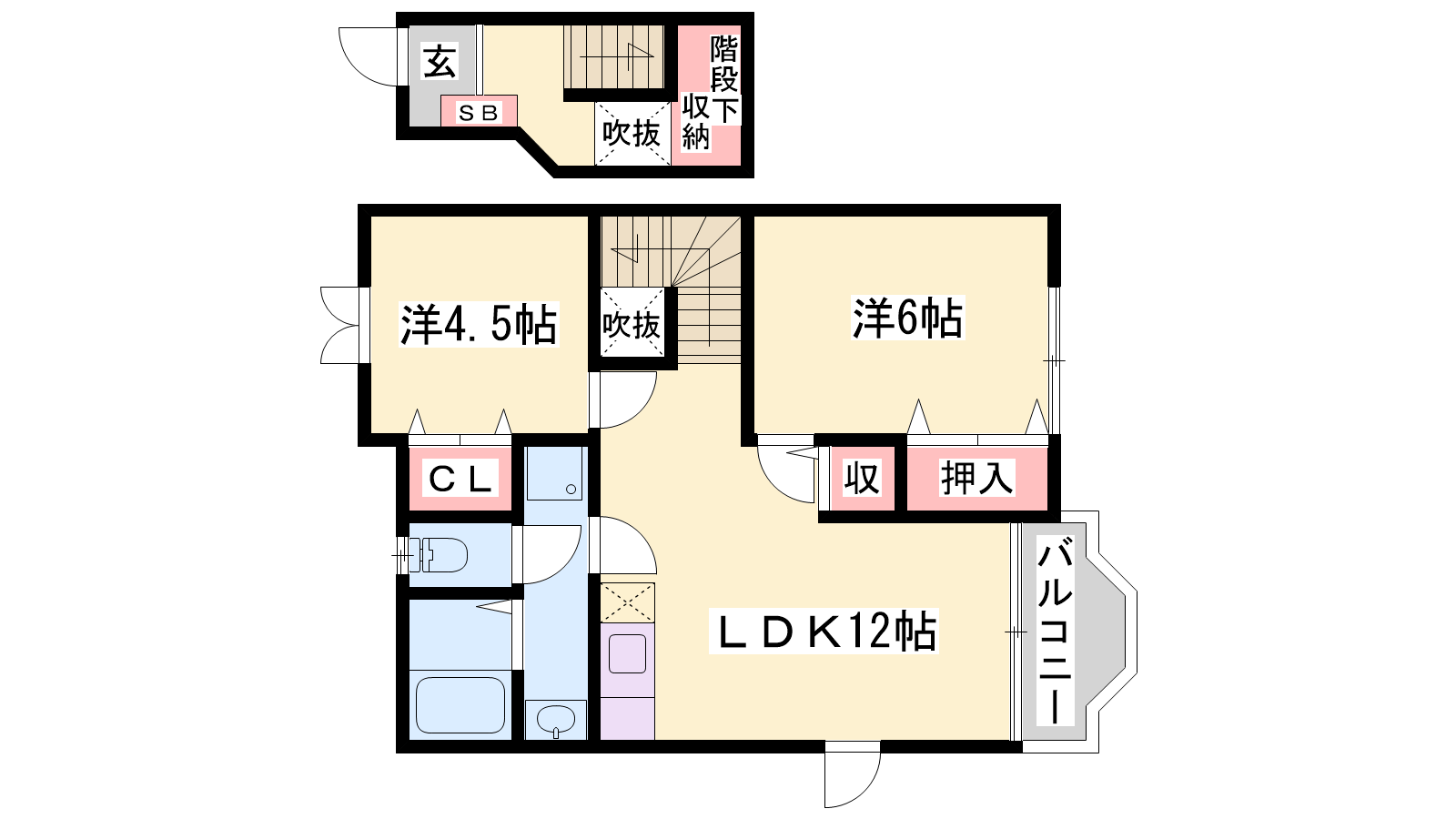 - LDK12帖、洋室4.5帖、洋室6帖