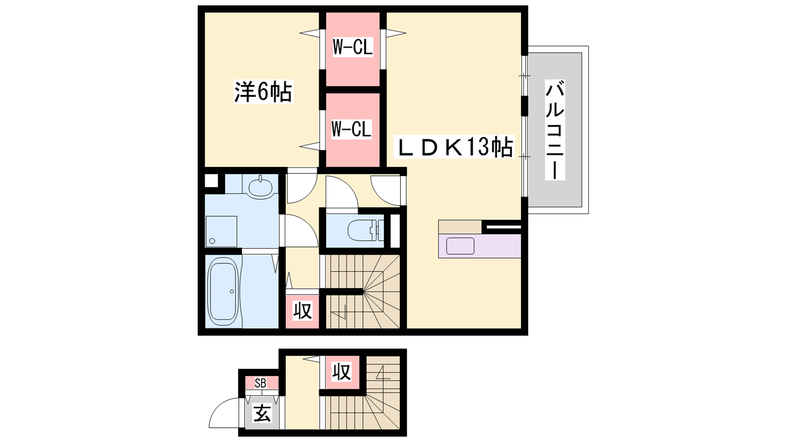 - LDK13帖、洋室6帖