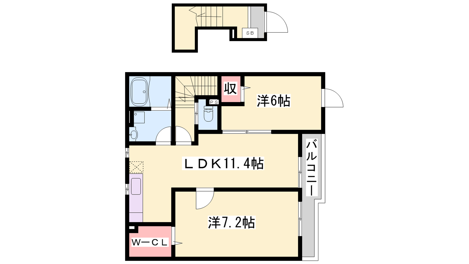 - LDK11.4帖、洋室7.2帖、洋室6帖