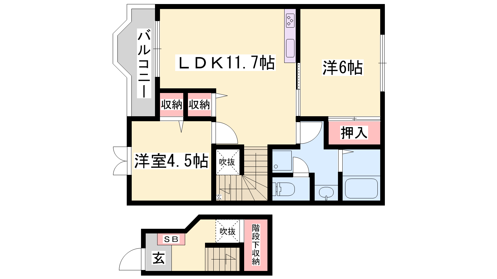 - LDK11.7帖、洋室4.5帖、和室6帖