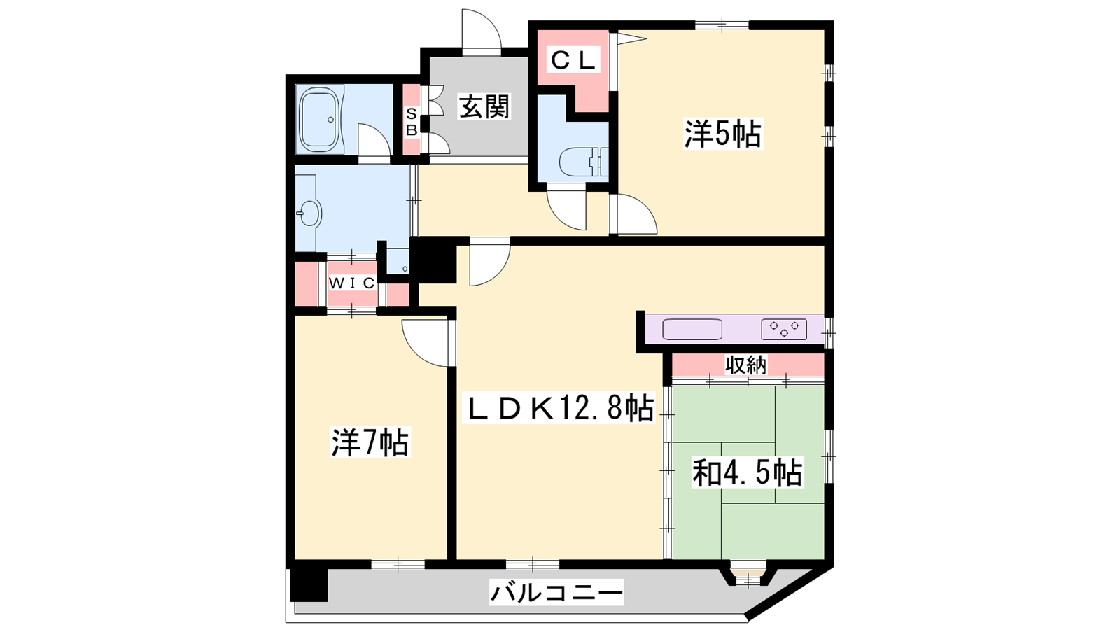 - LDK12.8帖、洋室7帖、洋室5帖、和室4.5帖