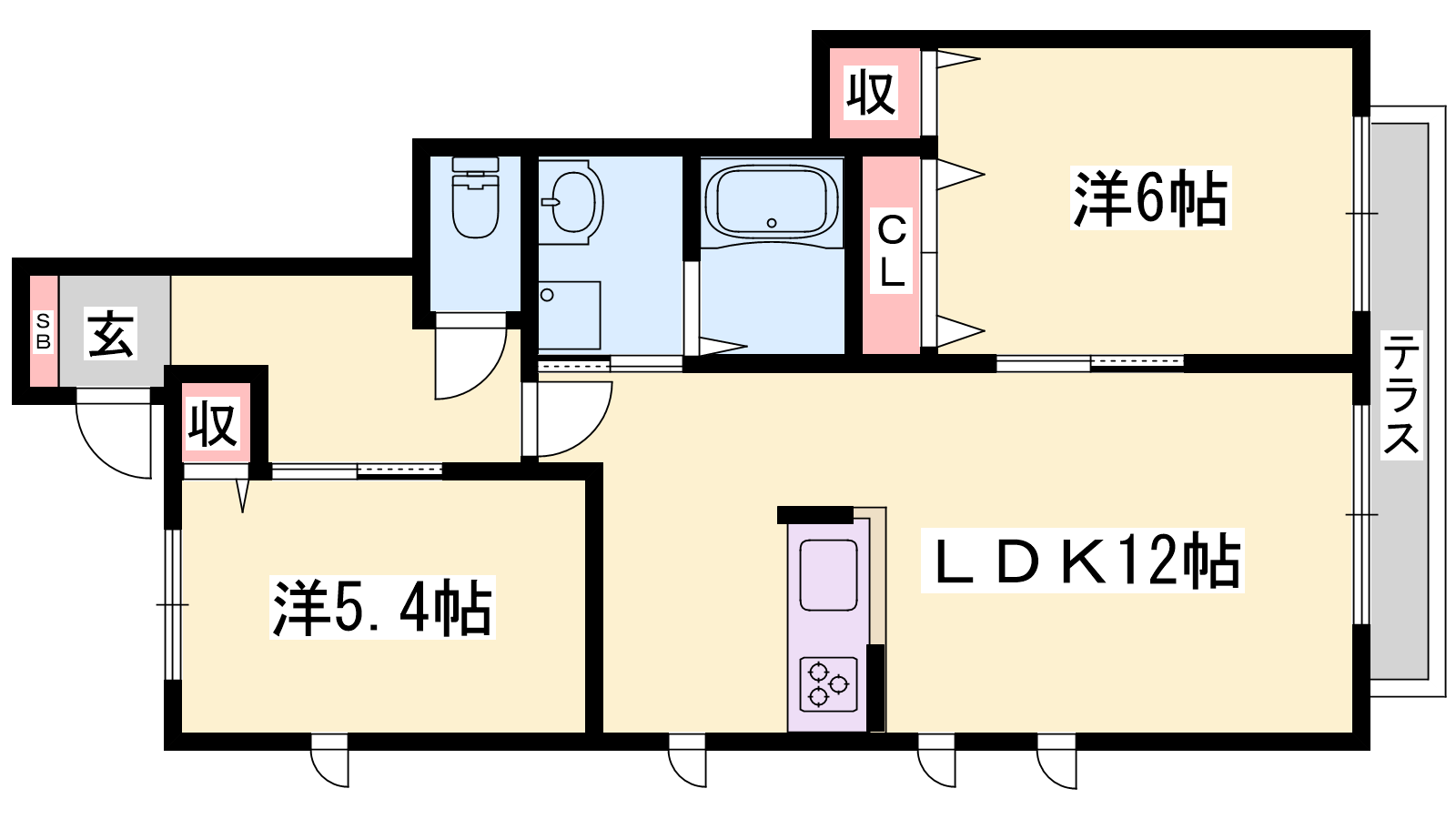 - LDK12帖、洋室6帖、洋室5.4帖