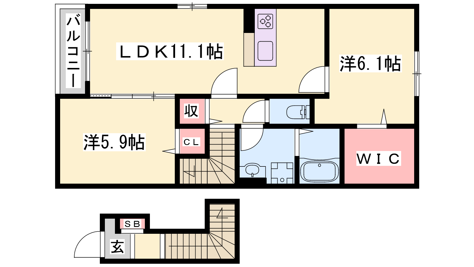 - DK11.1帖、洋室6.1帖、洋室5.9帖