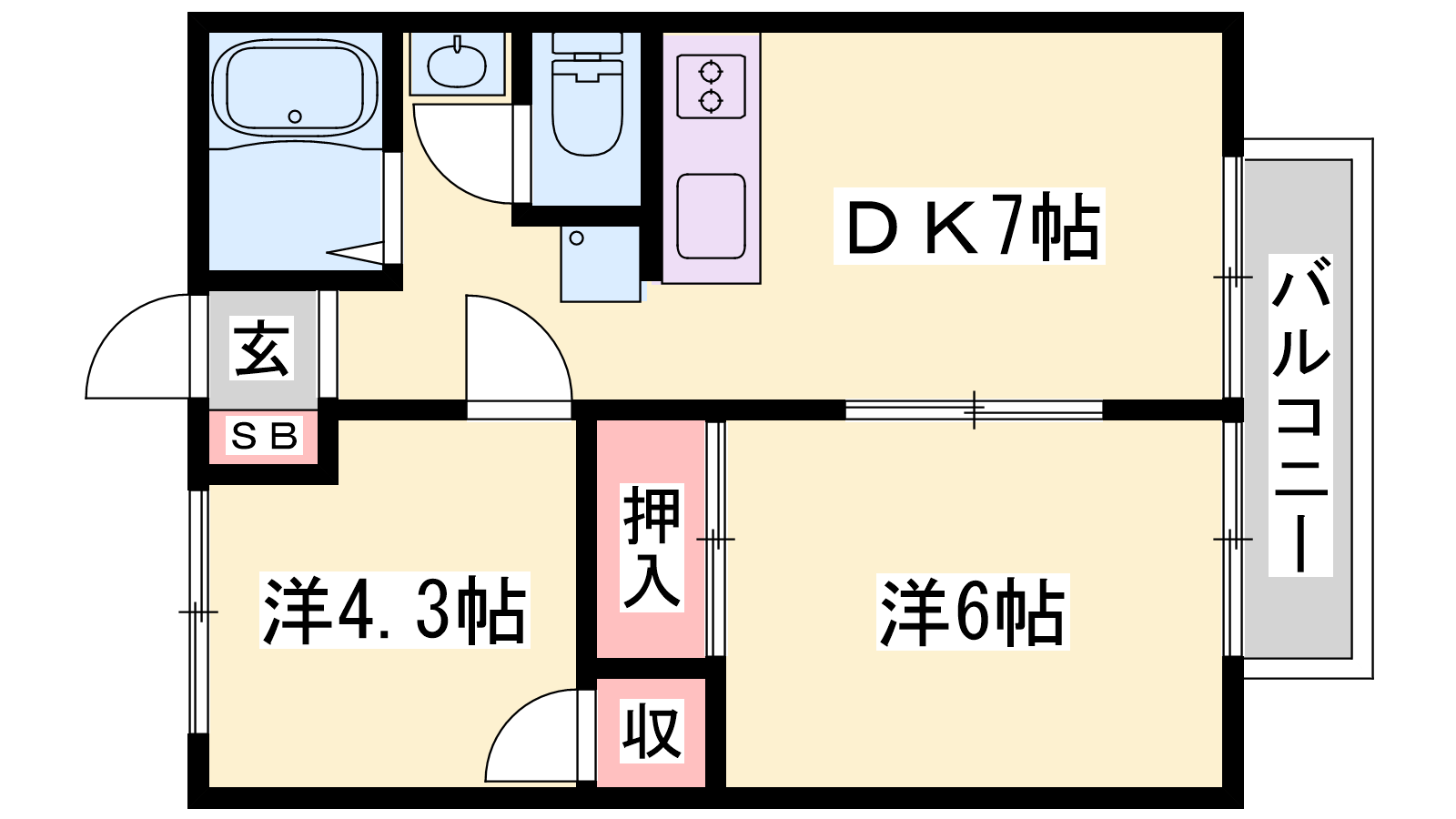 - DK7帖、洋室4.3帖、洋室6帖