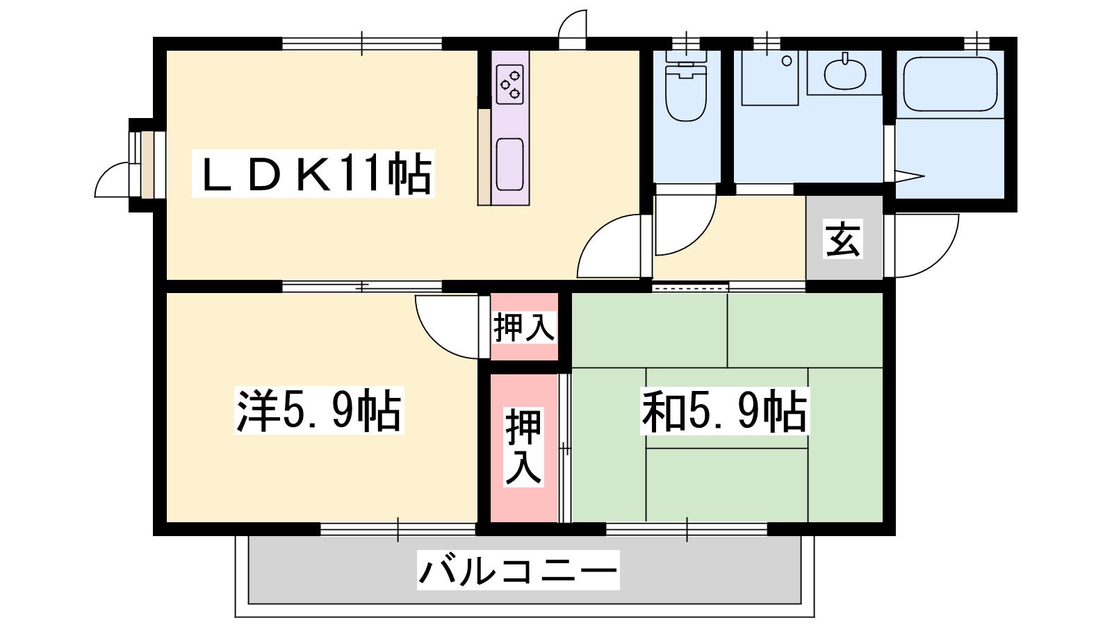 - LDK11帖、洋室5.9帖、和室5.9帖